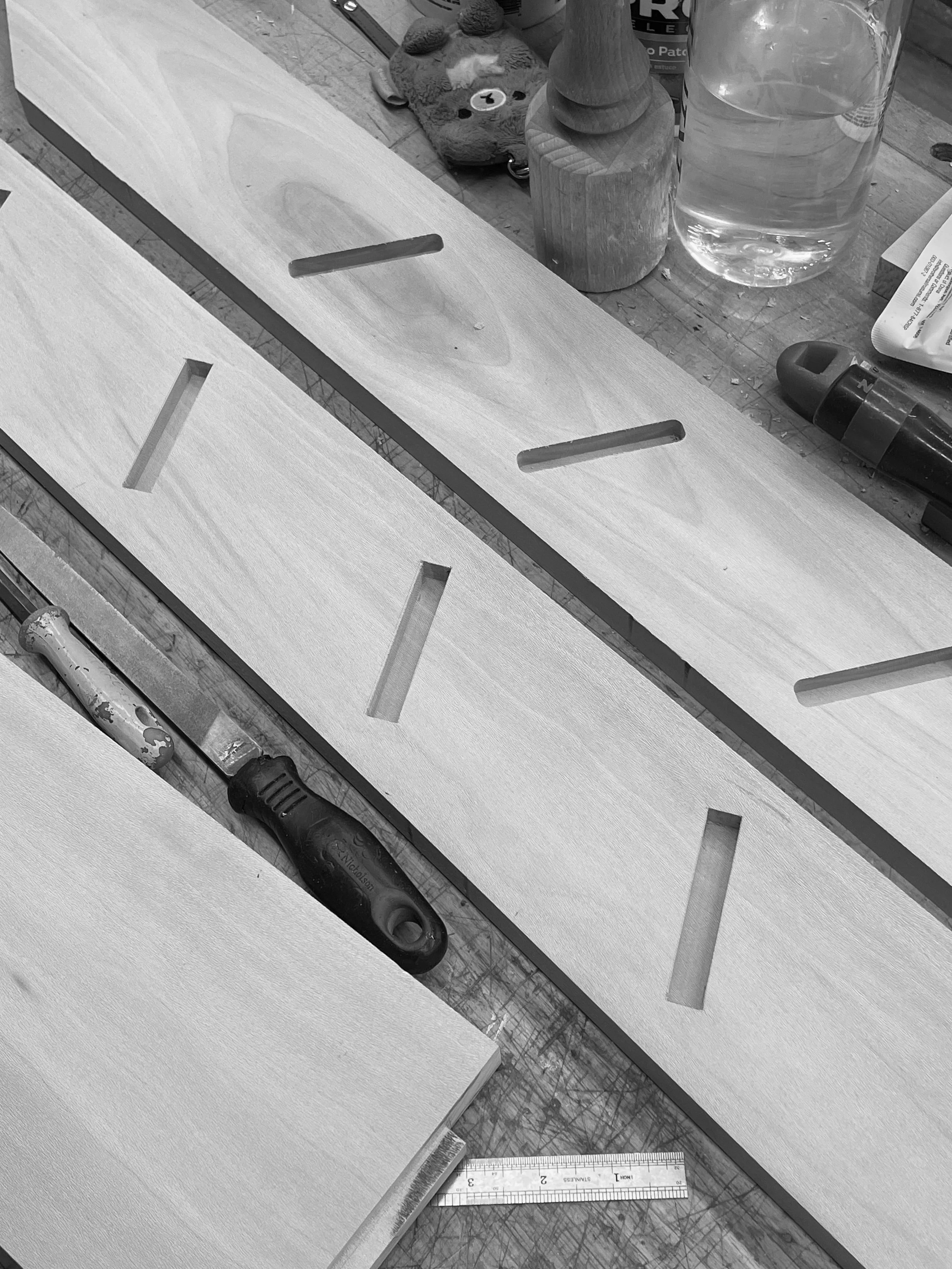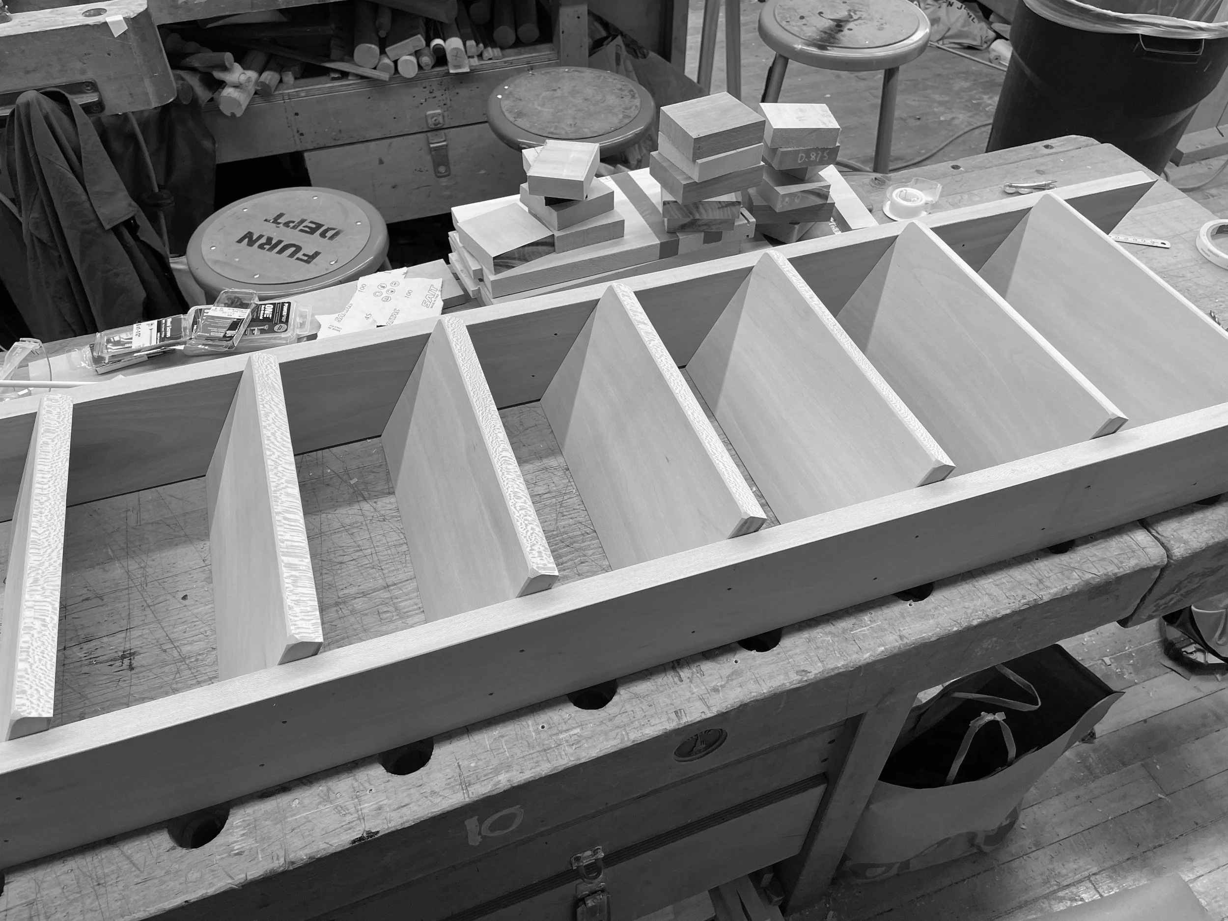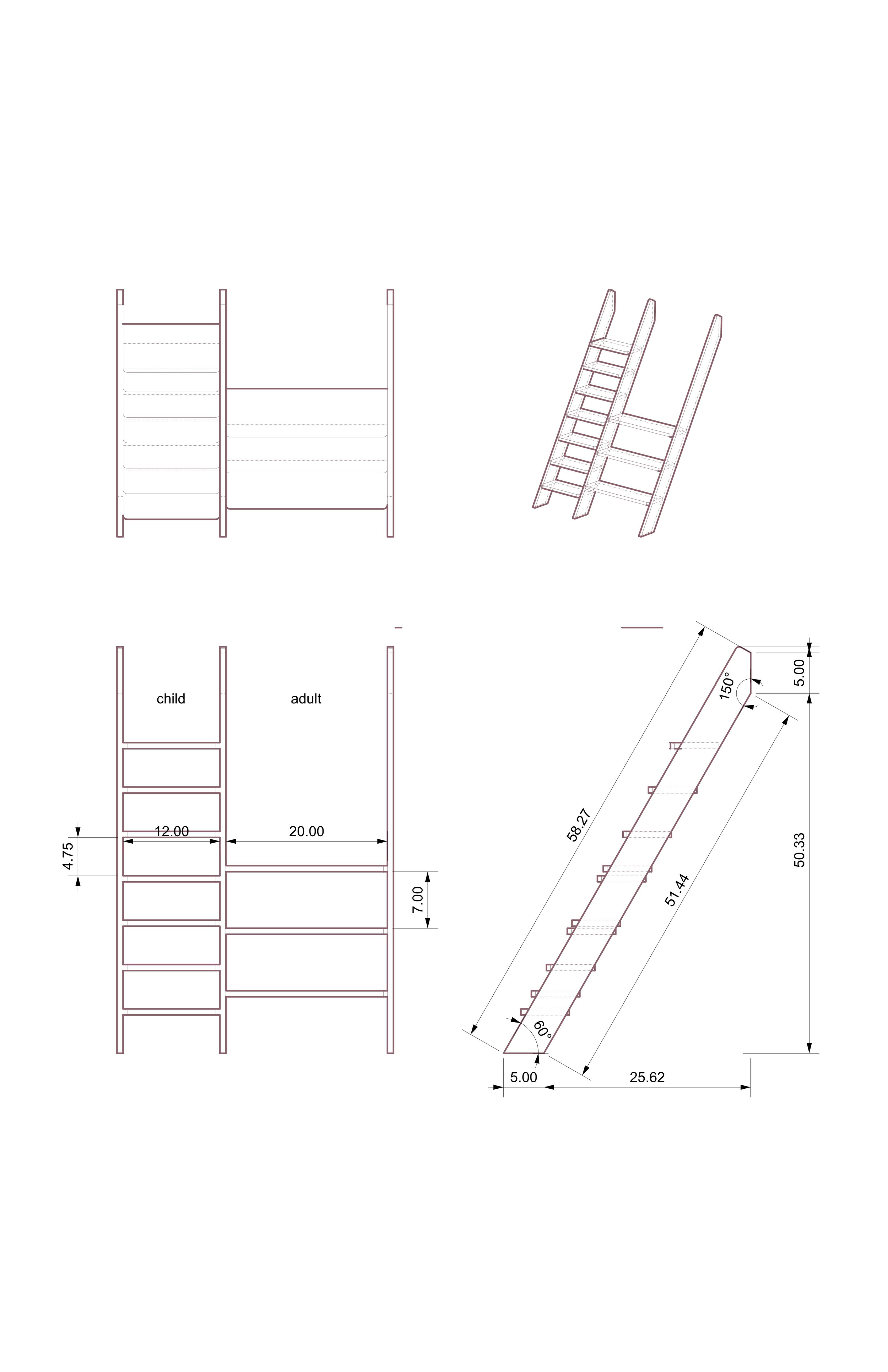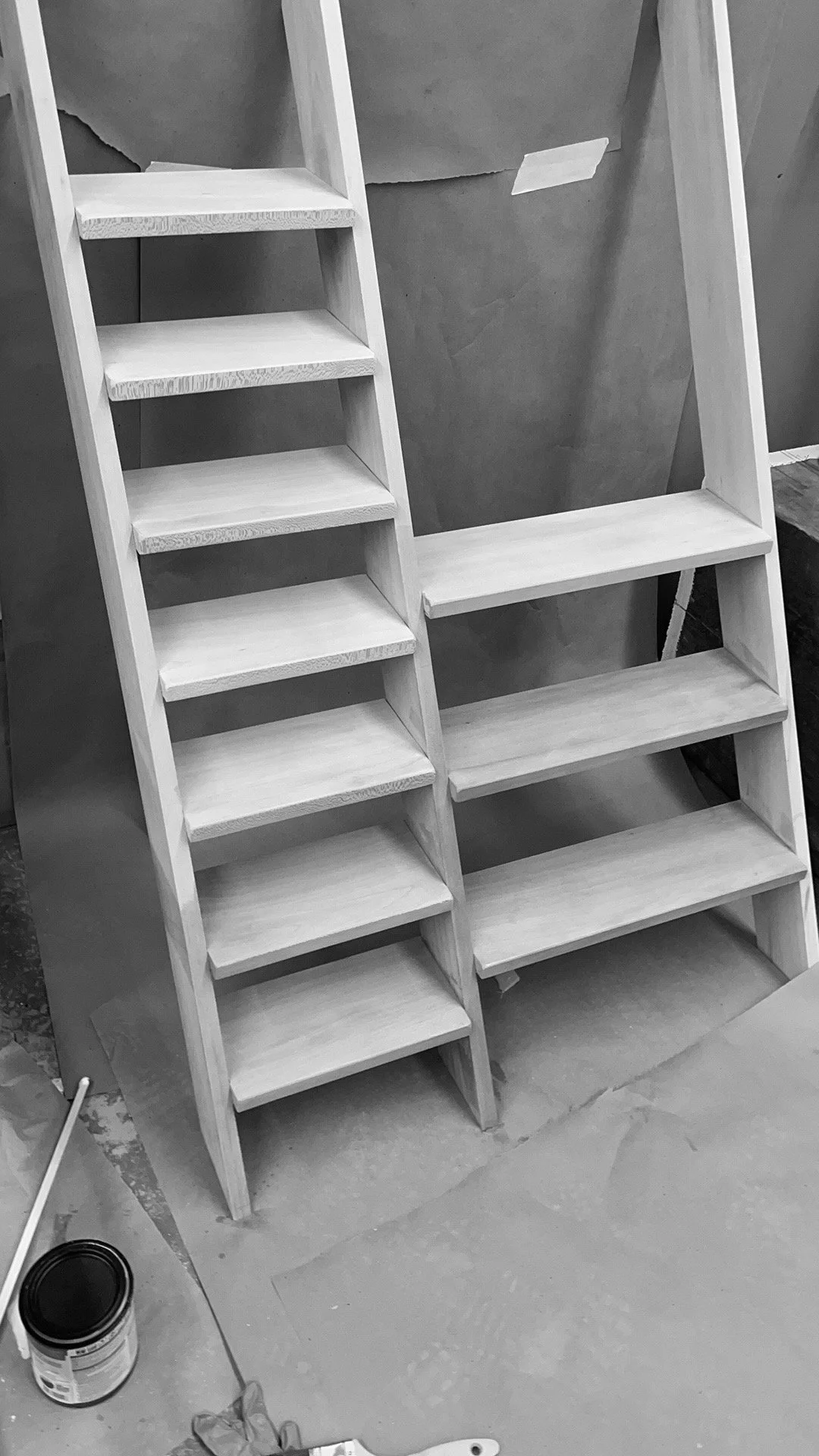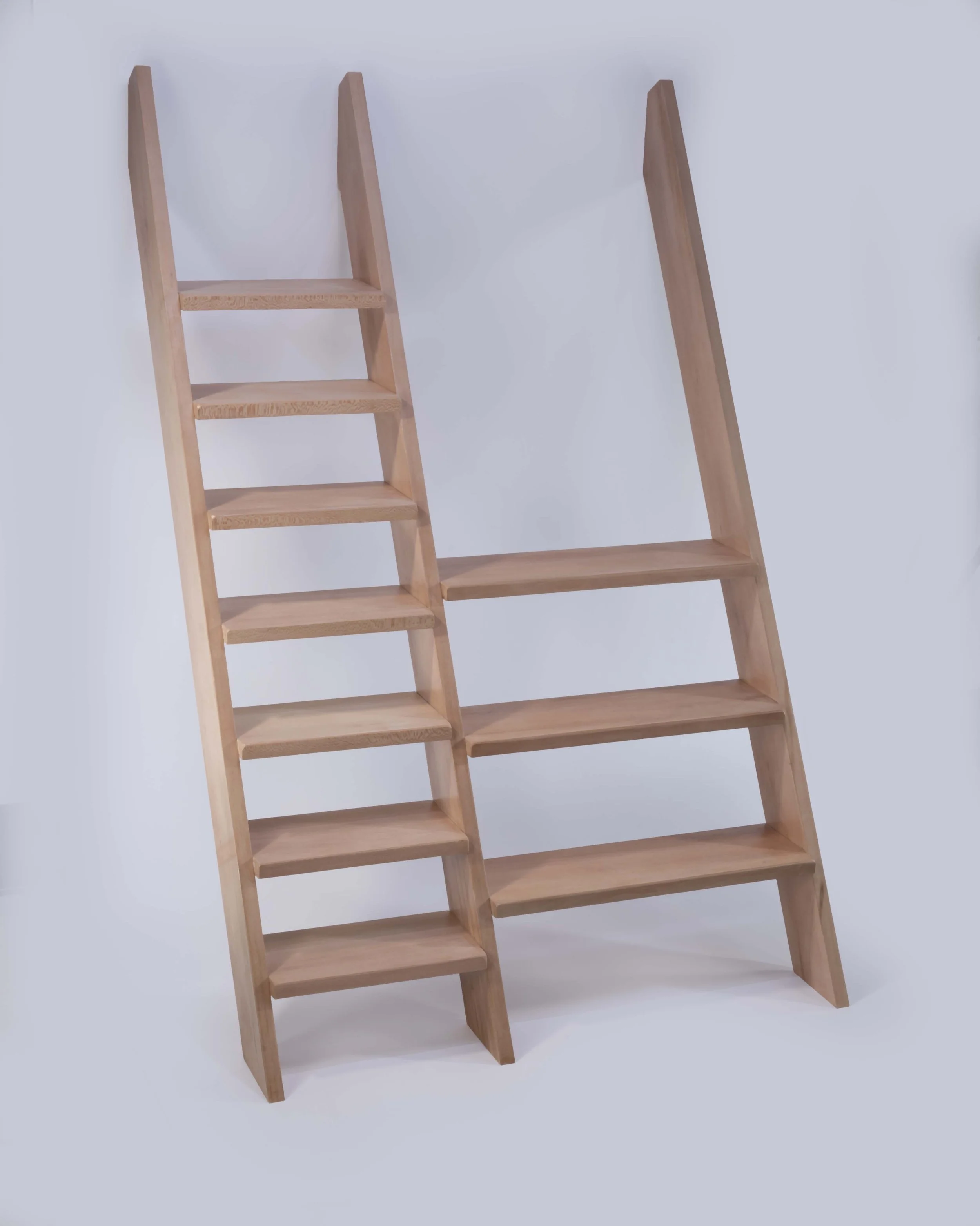 The fabrication process begins with meticulously milling the wood to the desired thickness, followed by precise cuts using a table saw to achieve accurate dimensions. Half lap joinery is crafted using the table saw, with Sycamore dowels for reinforcement. Utilizing a CNC machine, the support horizontal parts of the ladder are cut out with precision. Finally, assembly is completed with a strong adhesive to achieve a flawless finish for the design.