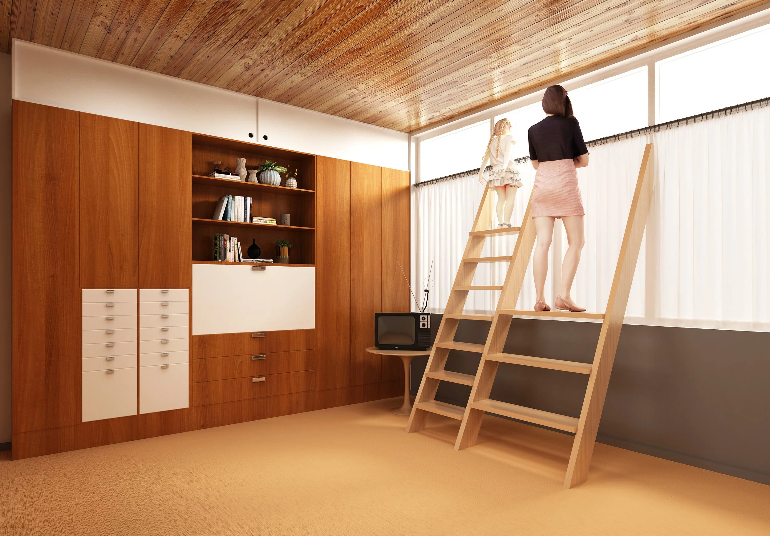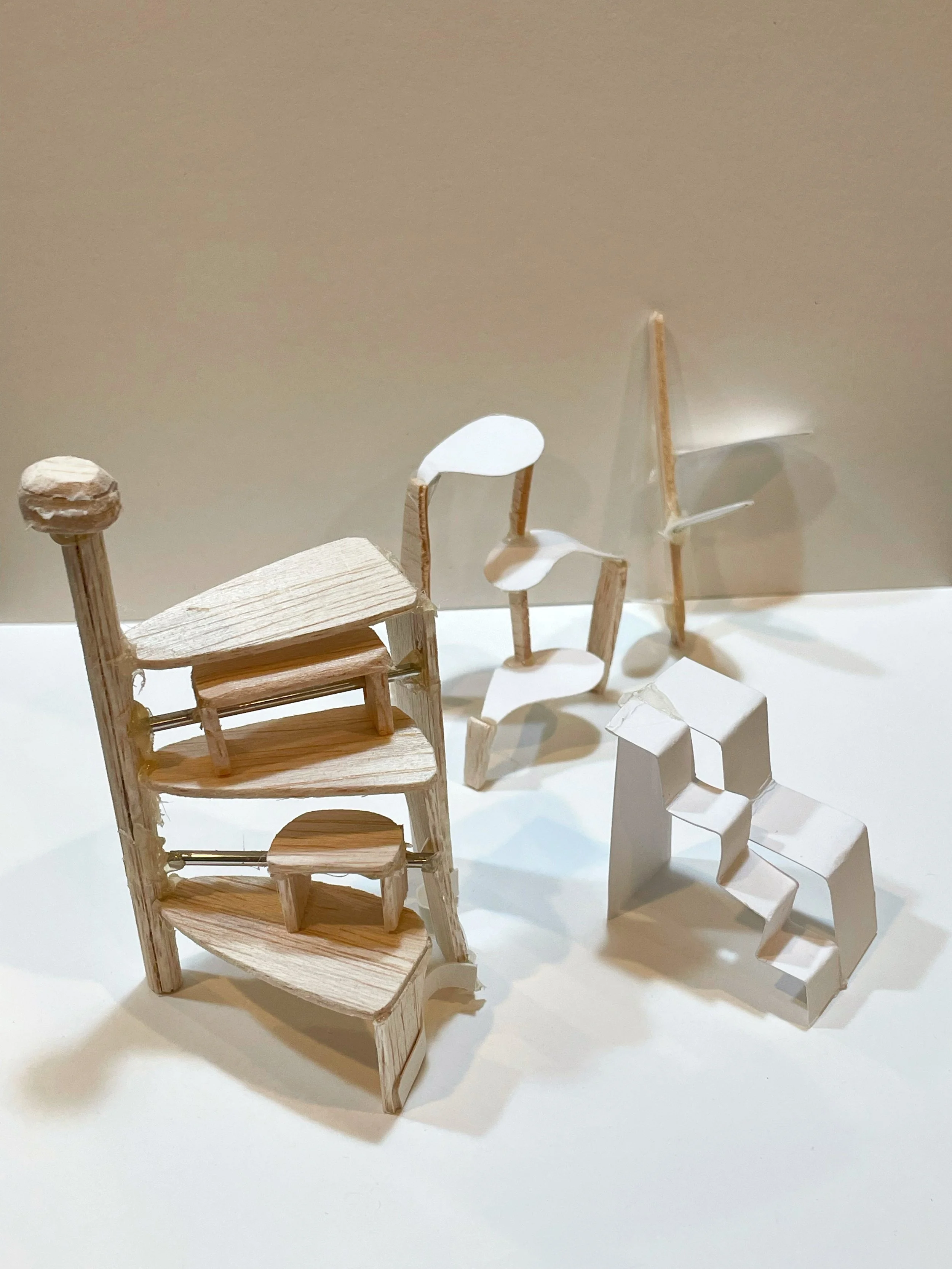 My project, inspired by human actions I observed in the De Pree House, intertwines emotions with space through material craftsmanship. Utilizing Sycamore, I crafted a staircase to touch transom windows to enhance interaction between family spaces. This transformative experience created shared moments for children and parents, discovering Herman Miller's brand history and viewing furniture as a medium for user interaction.