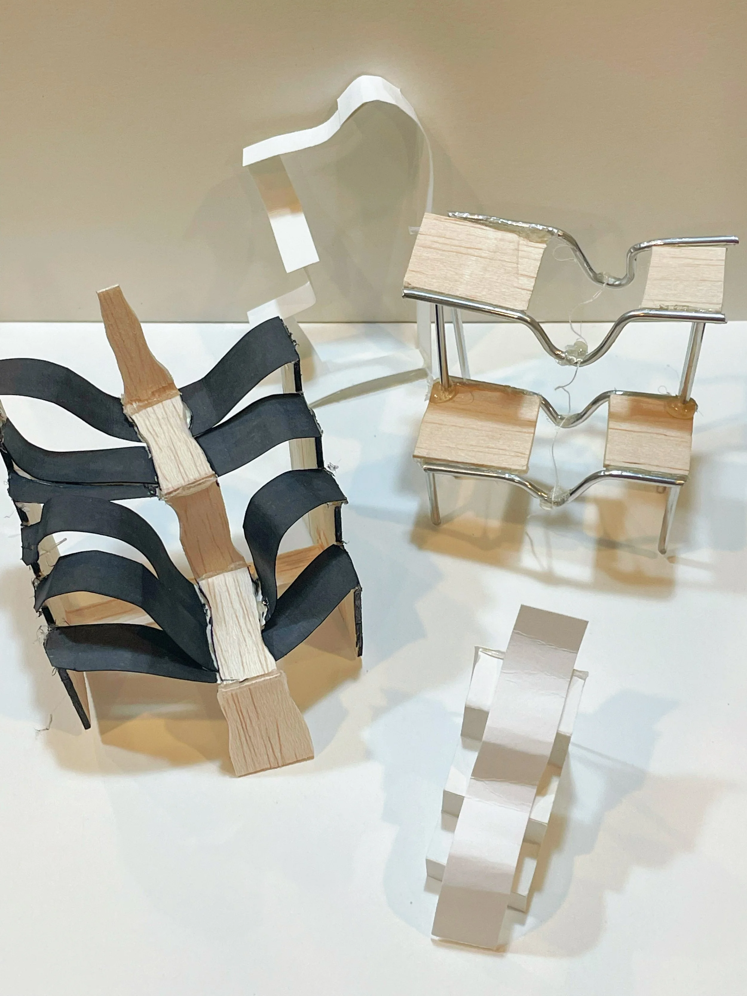 I used metal rod, ply wood, bristol paper for early model exploration